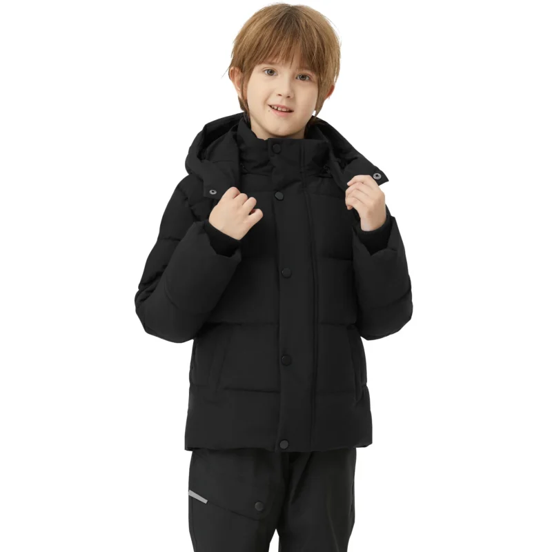 Boy’s Warm Winter Coat Recycled Insulated Winter Puffer Jacket Hooded Outerwear Jacket Black 10/12