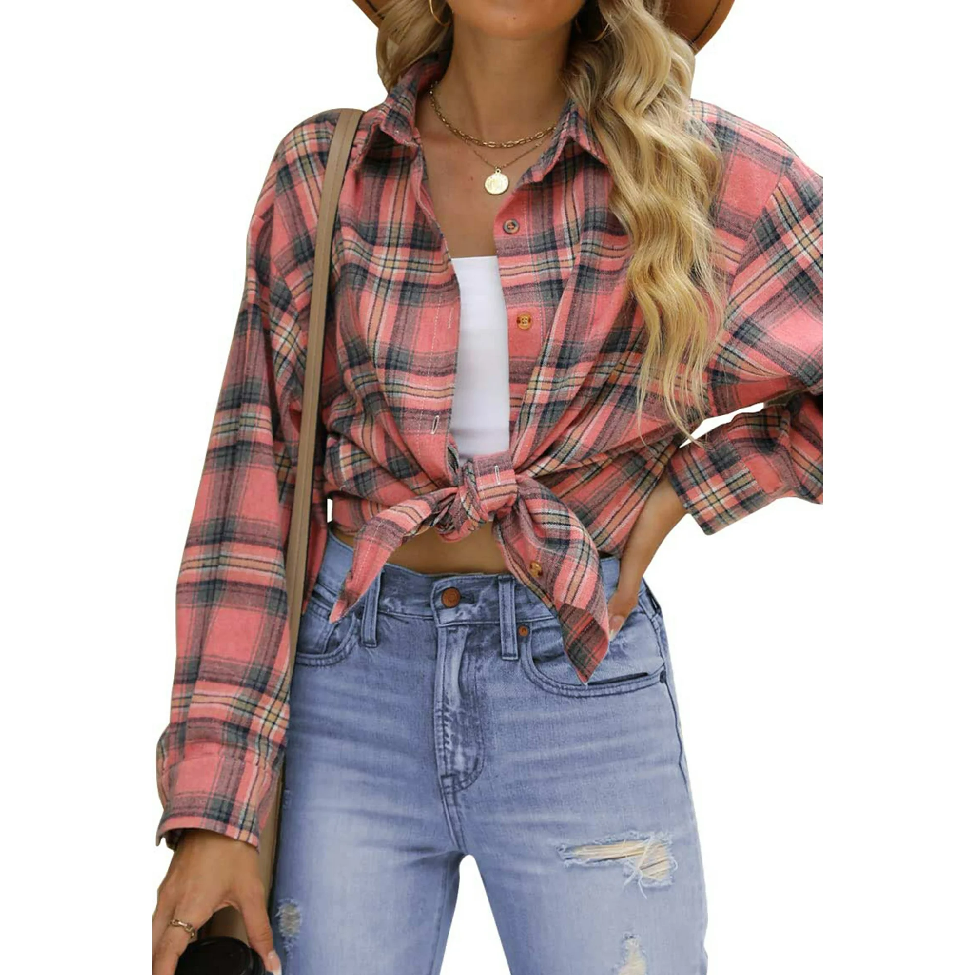 Plaid flannel shirts for women is the perfect addition to your wardrobe. Crafted with both style and comfort in mind, button up shirts are a must-have for fashion-forward women. The timeless plaid pattern exudes a classic charm, long sleeve shirts for women made from high-quality flannel fabric, are incredibly soft to the touch. Womens plaid shirts feature long sleeves, button down blouses, curved hem, boyfriend shirts, casual oversized shirts. Womens blouses versatile design allows you to wear them as shirts or layered over a basic tee. Womens tops button down feature allows for easy on-and-off and gives you the flexibility to style the shirt in various ways, or button it up for a stylish and casual outfit.