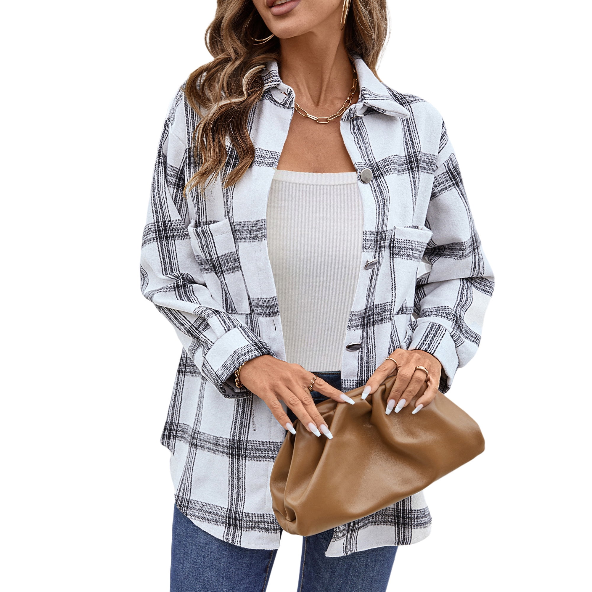 - ❤ 【Match】: This plaid shirts flannel shacket Jacket is perfect for layering or on its own. It’s a stylish statement piece when paired with jeans, leggings, pencil skirt or slacks for a dressed up/dressed down look.
